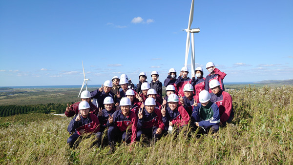 稚内高校商業科1学年生33名が「地域産業視察事業」の一環として、恵北にそびえ立つ天北エナジーの風車を見学されました。